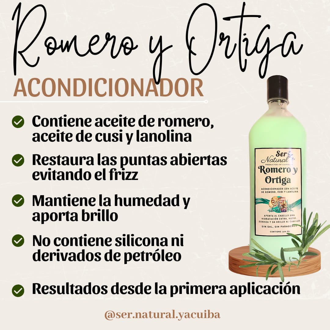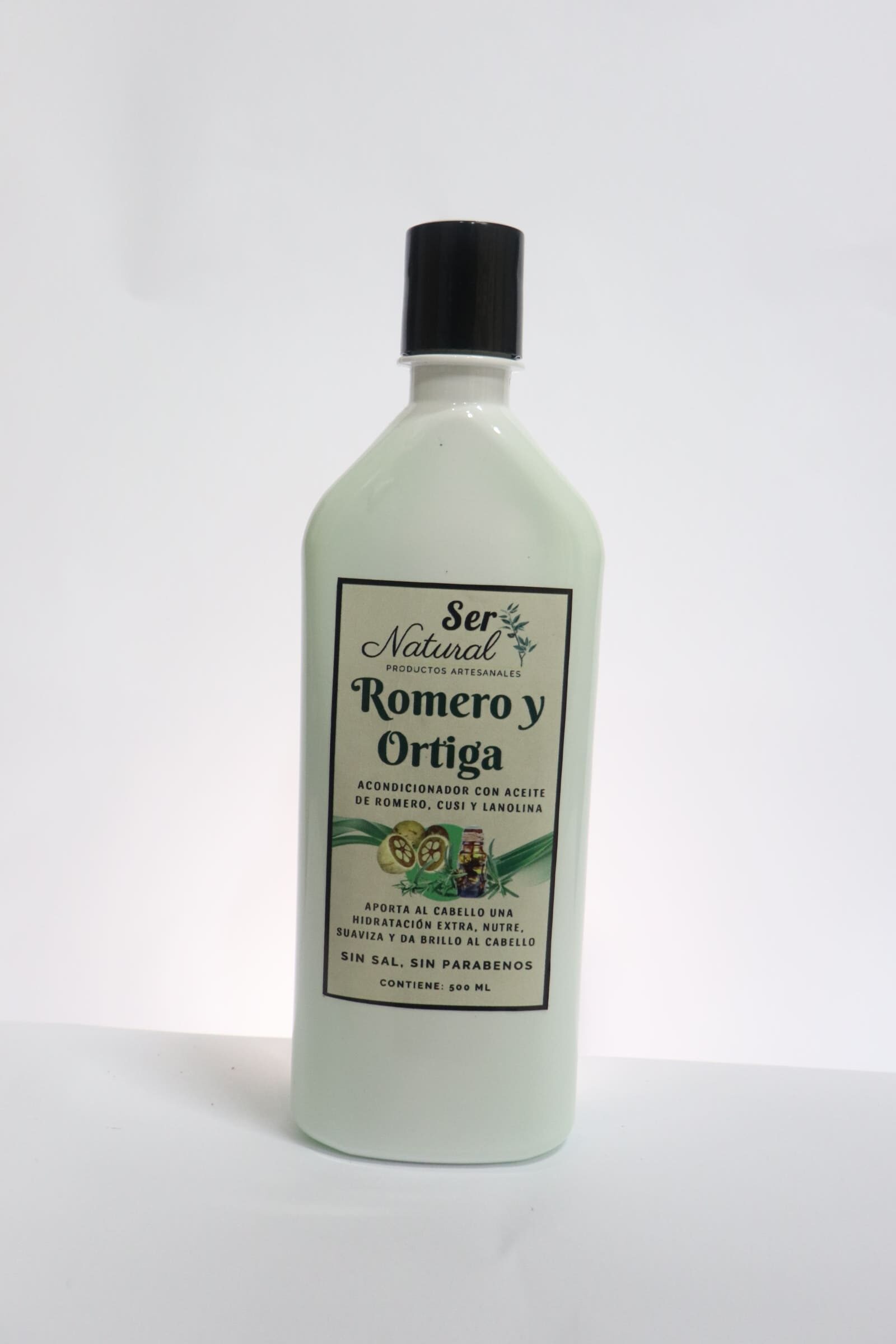 Acondicionador de romero y ortiga sin silicona, ni aceites sintéticos, con aceites vegetales y mantecas, que dejan el cabello suave, presentación de 500ml