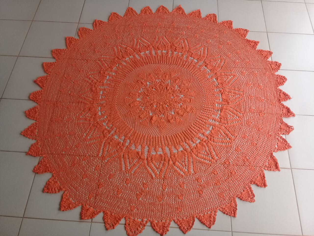Tiene un diámetro de aproximadamente 2,50m perfecto para cubrir una mesa de 8 sillas con comodidad y estilo.