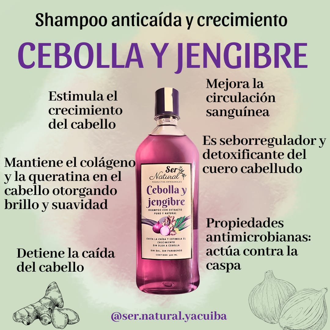 Shampoo de cebolla y jengibre presentación de 500ml SIN SAL ni parabenos, estimula el crecimiento y la reducción de la caída del cabello