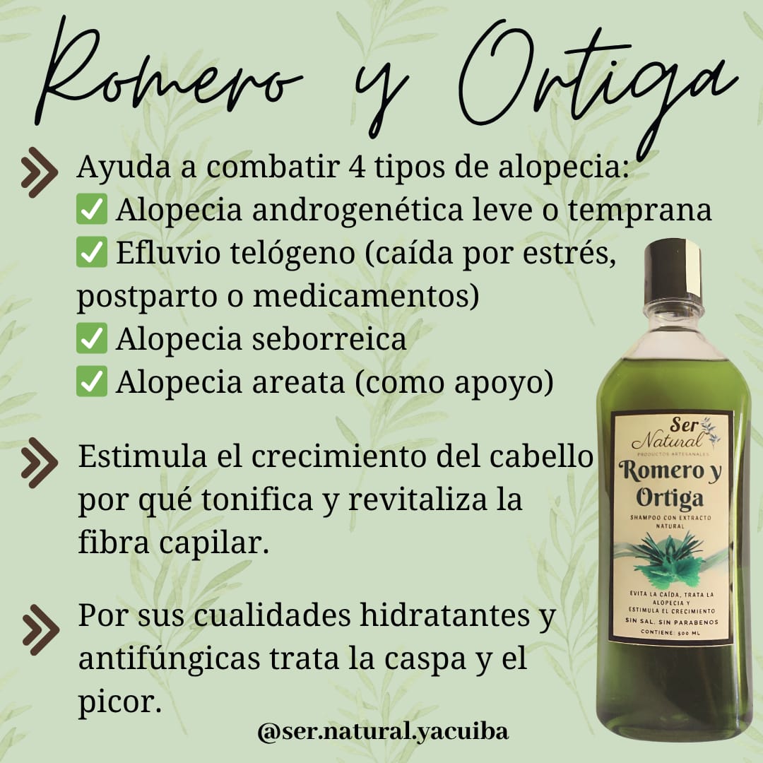 Shampoo romero y ortiga 500ml previene la caída del cabello, estimula su crecimiento, trata la caspa y el picor